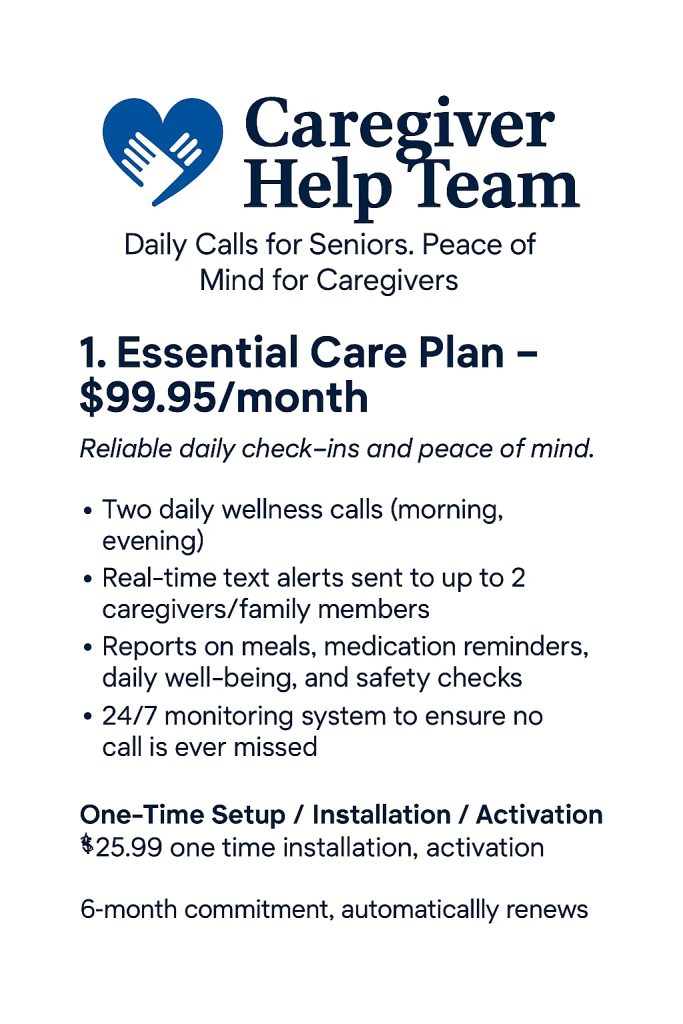 Your loved one’s safety shouldn’t be left to chance. With Caregiver Help Team, you’ll know they are cared for — every day, every call.